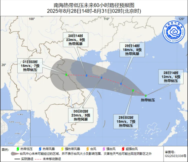 海南省气象台预计,该低压将以每小时15~20公里的速度向西偏北方向移动,强度逐渐增强,有可能于29日加强为今年第14号台风,并向海南岛南部海面靠近。受其影响,8月28日下午~30日,西沙、中沙群岛附近海面、海南岛四周海面和北部湾海面,风力将逐渐增大到6~7级、阵风8~10级;海南岛东半部地区有暴雨到大暴雨。请相关部门关注最新天气预报,海上作业平台及过往船只提前做好避风措施。