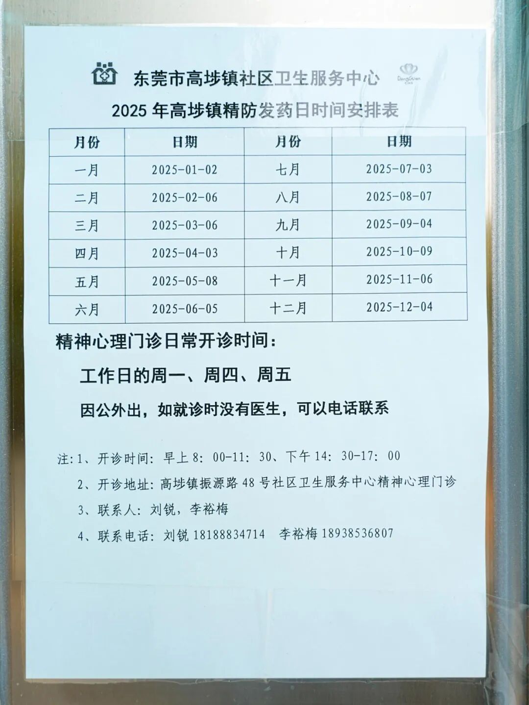 门诊开放时间为每周星期一、星期四、星期五(工作日)。居民可前往高埗镇社区卫生服务中心一楼精神心理科门诊就诊。
