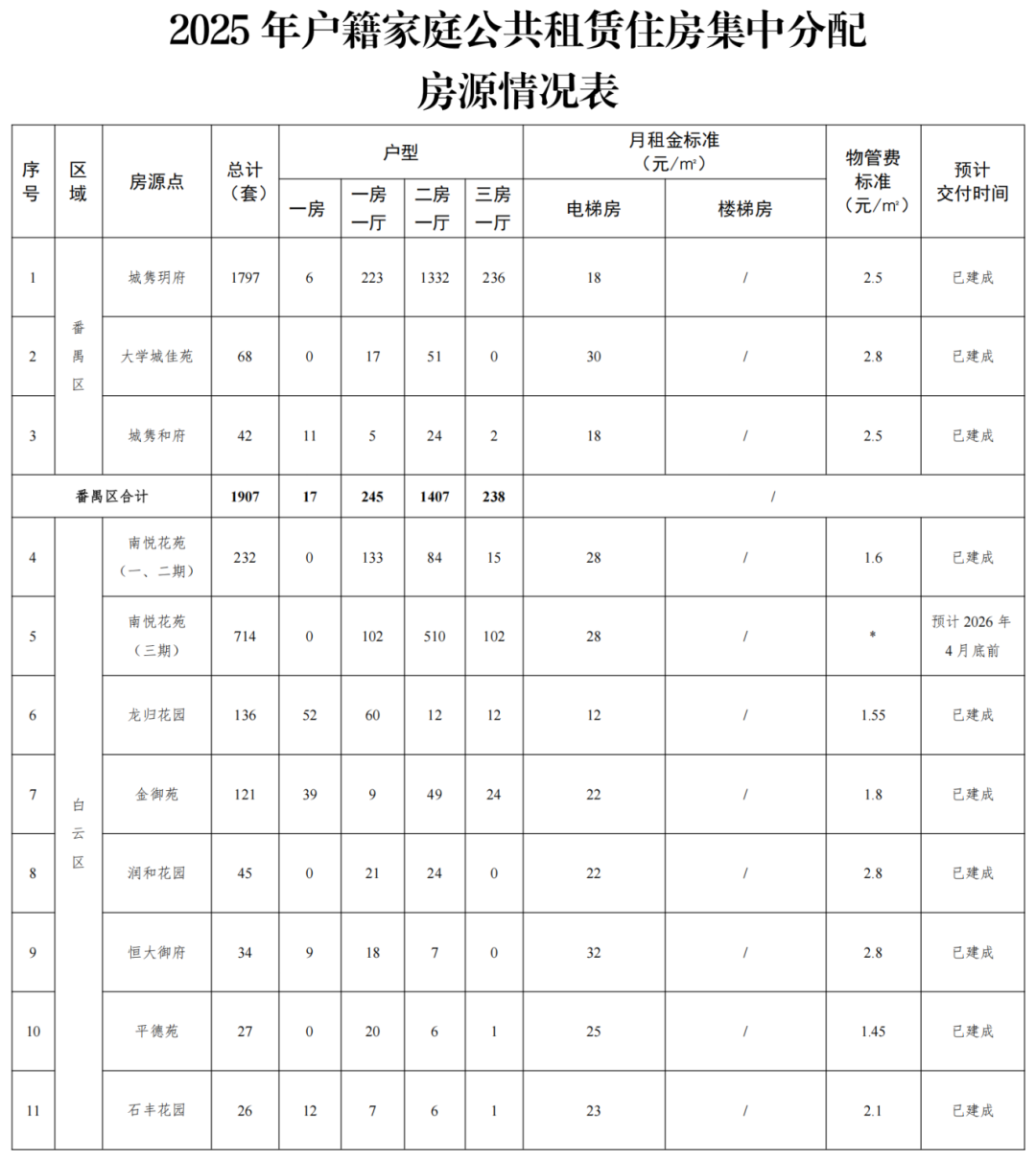 《广州市2025年户籍家庭公共租赁住房摇号分配指引》链接: