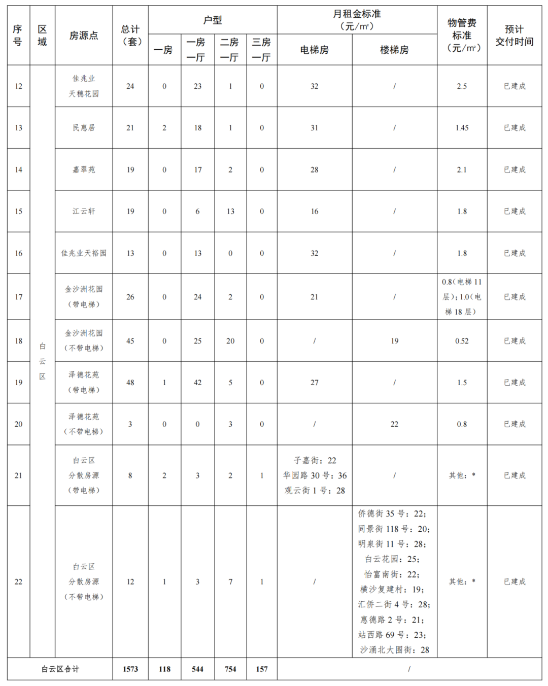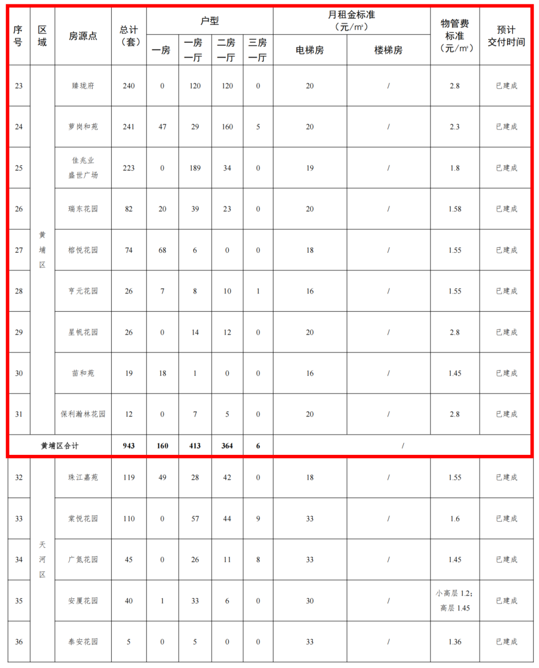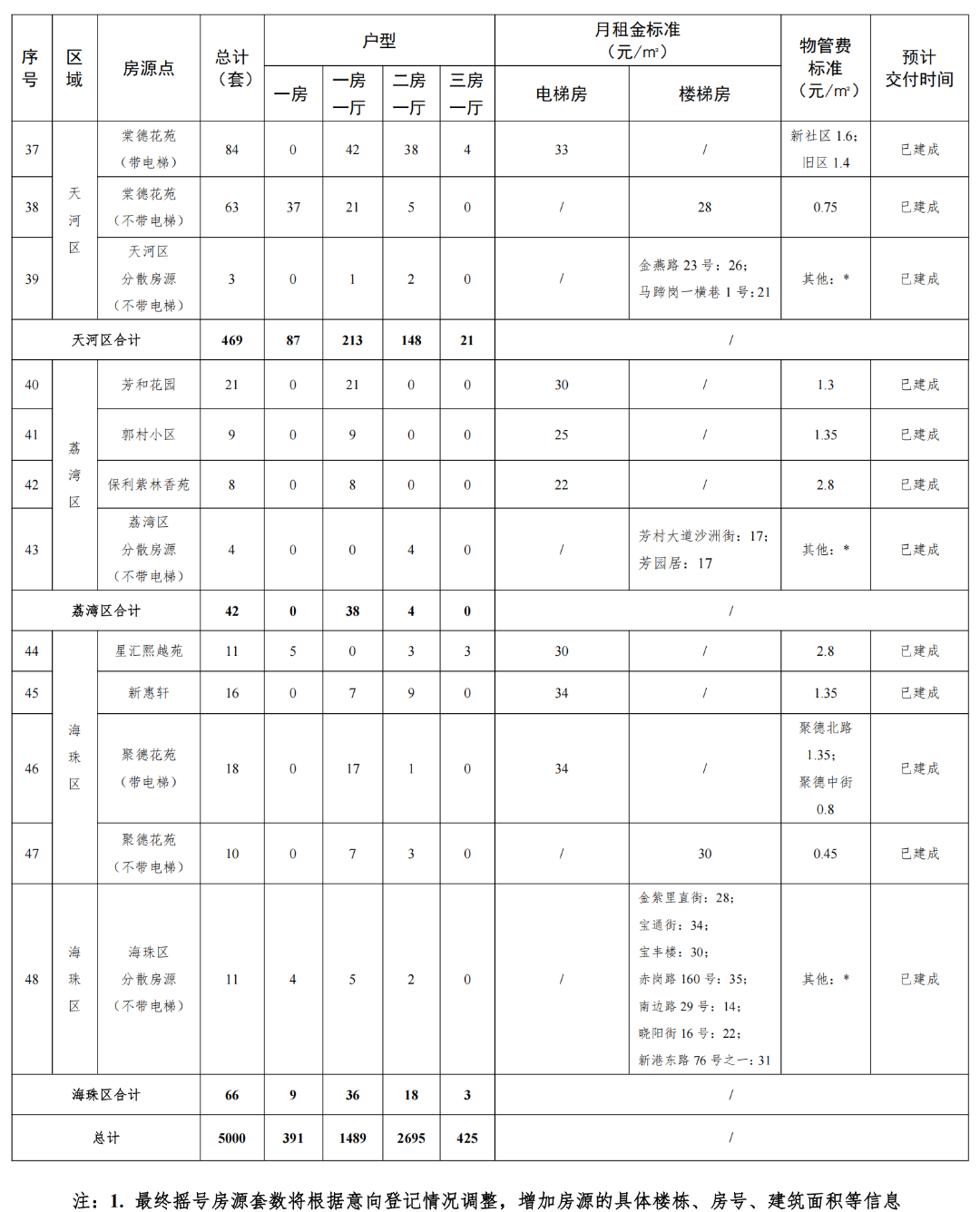 其中,番禺区1907套,白云区1573套,黄埔区943套,天河区469套,荔湾区42套,海珠区66套,户型方面,一房391套,一房一厅1489套,二房一厅2695套,三房一厅425套。