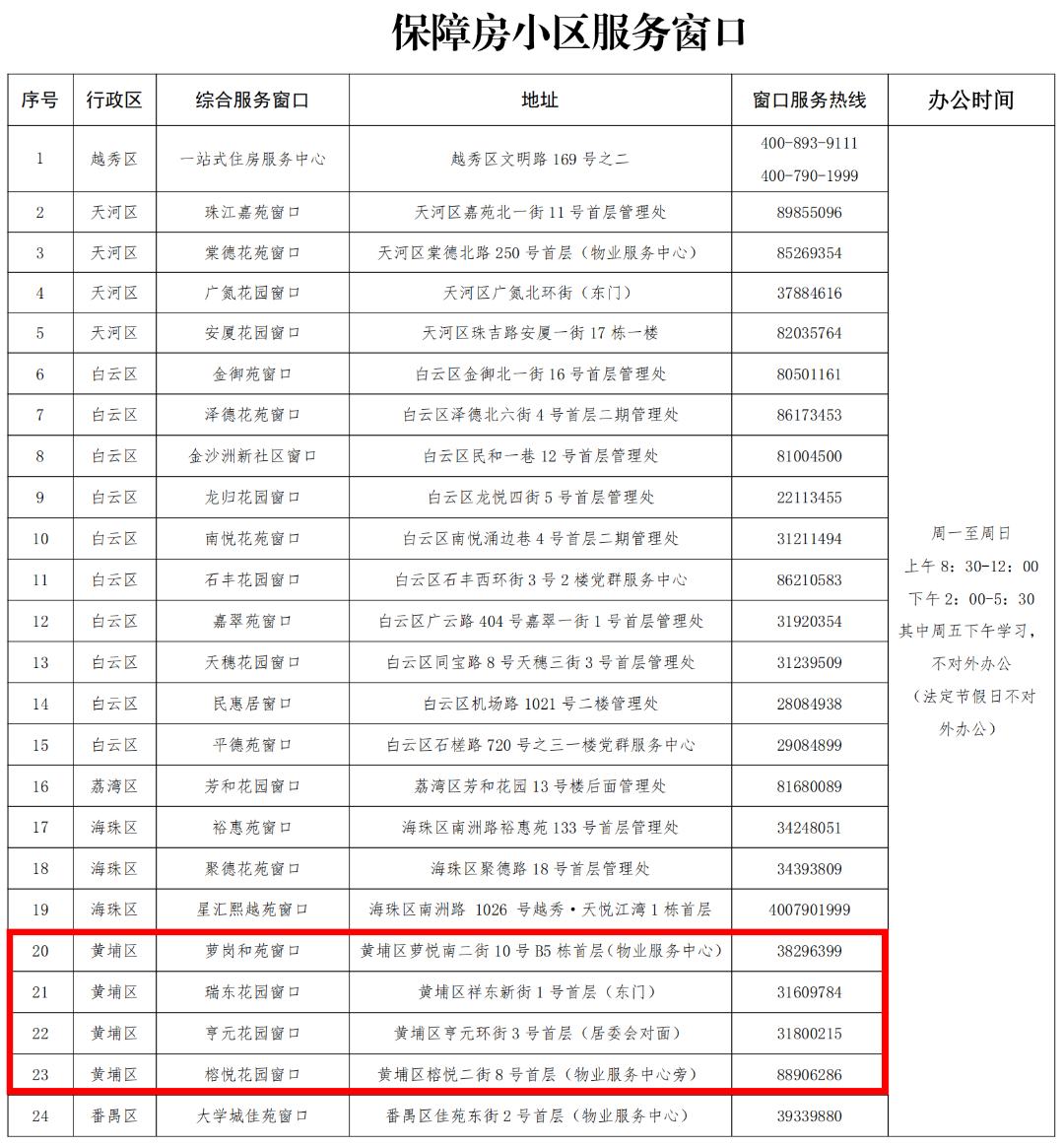 (四)申请家庭如需了解本次公共租赁住房分配的相关情况,可前往各街道办事处(镇人民政府)、保障房小区服务窗口咨询或登录广州市住房和城乡建设局网站查看详情,也可致电公租房运营单位服务热线(电话:400-893-9111、400-790-1999)咨询。