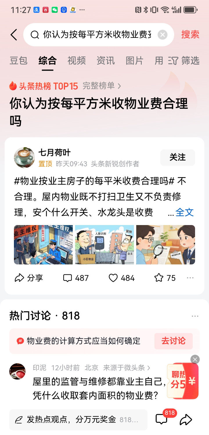 我始终坚定站在老百姓这一边,因为物业费的核心矛盾,根本不是该怎么收,而是到底该不该收!